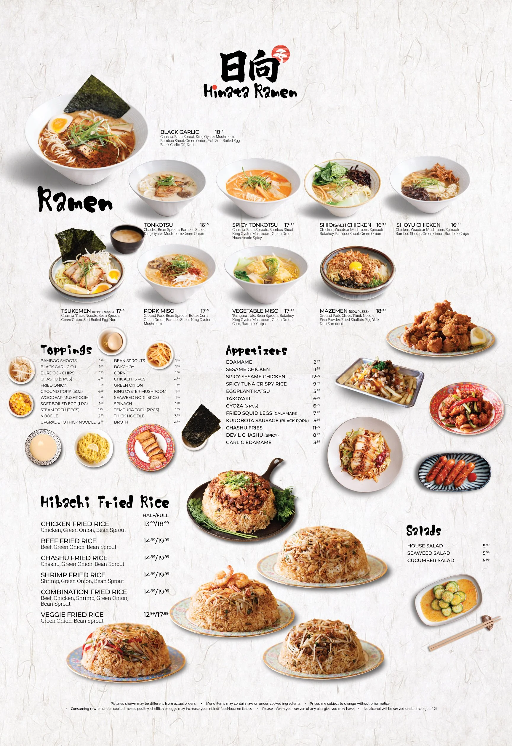 Looking for that perfect bowl? Hinata Ramen is serving up deep, soulful broths and sizzling hibachi fried rice that’ll keep you coming back for seconds (and thirds). From our signature Black Garlic Ramen to our