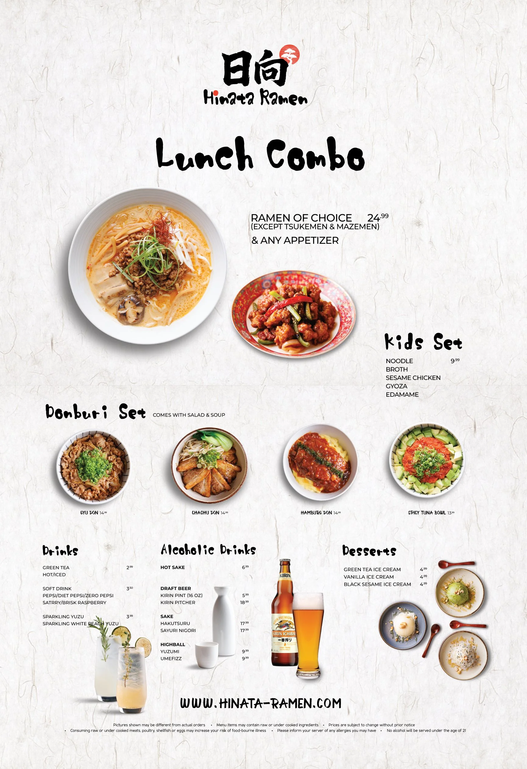 Pictures shown may be different from actual orders β€’ Prices are subject to change without prior notice β€’ Please inform your server of any allergies you may have